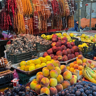 Dort geniessen wir einen Ruhetag. Wir besuchen das hoteleigene Weinmuseum, machen eigene Churchkhela (Nüsse werden mit Traubensaft-Kuvertüre überzogen), Danach machen wir georgische Teigtaschen, backen Brot im Holzofen, kosten Chacha-Schnaps und Qvevris-Wein, Am Abend offeriert Abenteuer Osten noch ein gemeinsames Abendessen.