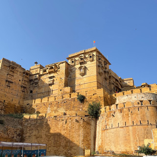 Der nächste Stopp ist beim Jaisalmer Fort. Es ist wohl eines der wenigen Forts, welches noch bewohnt ist. Fast ein Viertel der Bevölkerung der alten Stadt lebt innerhalb des Forts. Man merkt es auch in den schmalen Gassen - überall liegt der Abfall herum. Die Gebäude sind teilweise noch sehr schön und haben faszinierende Verzierungen. Die Kühe sind hier so heilig, dass sie sogar deren Scheisse verehren und verzieren.